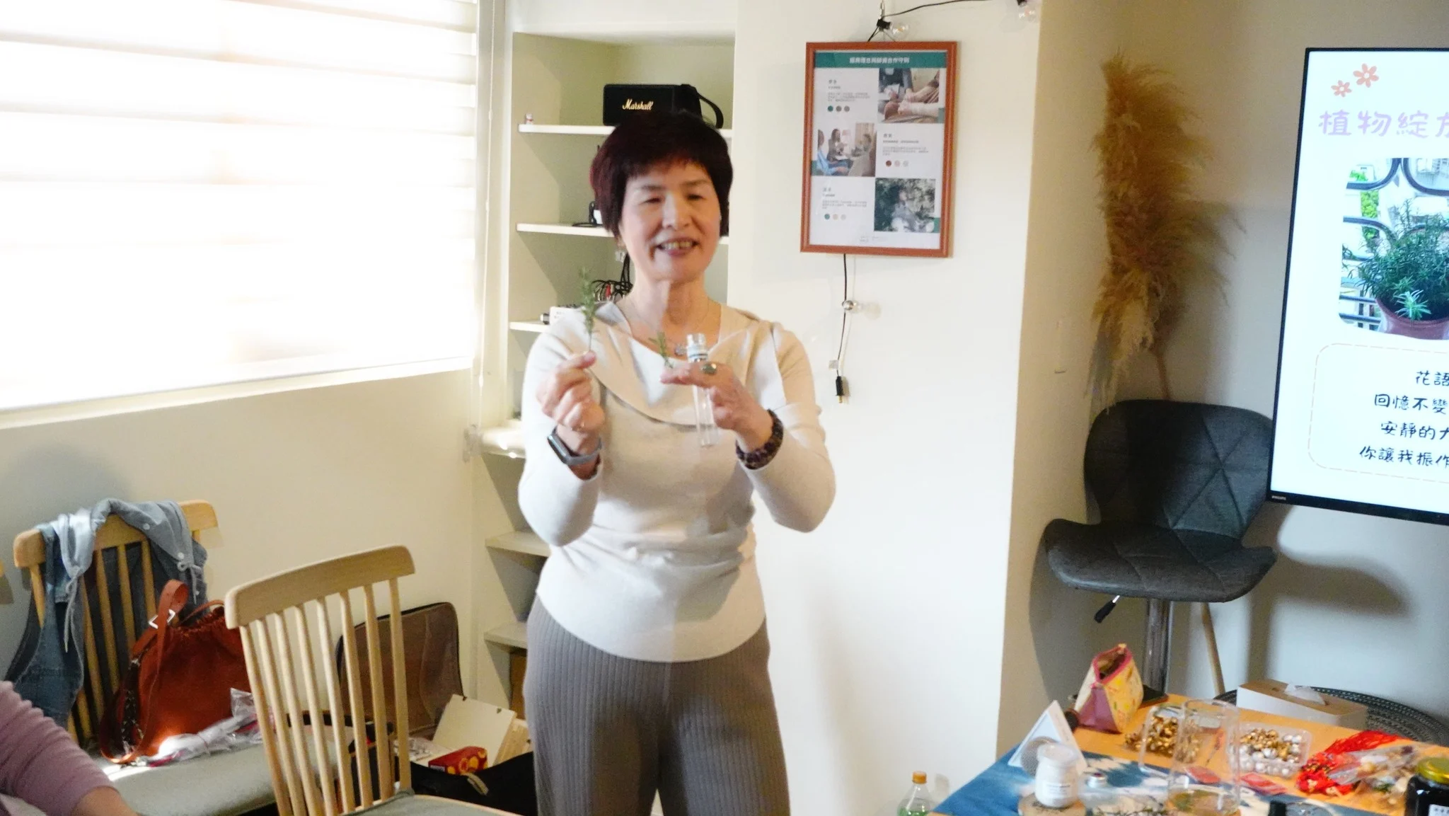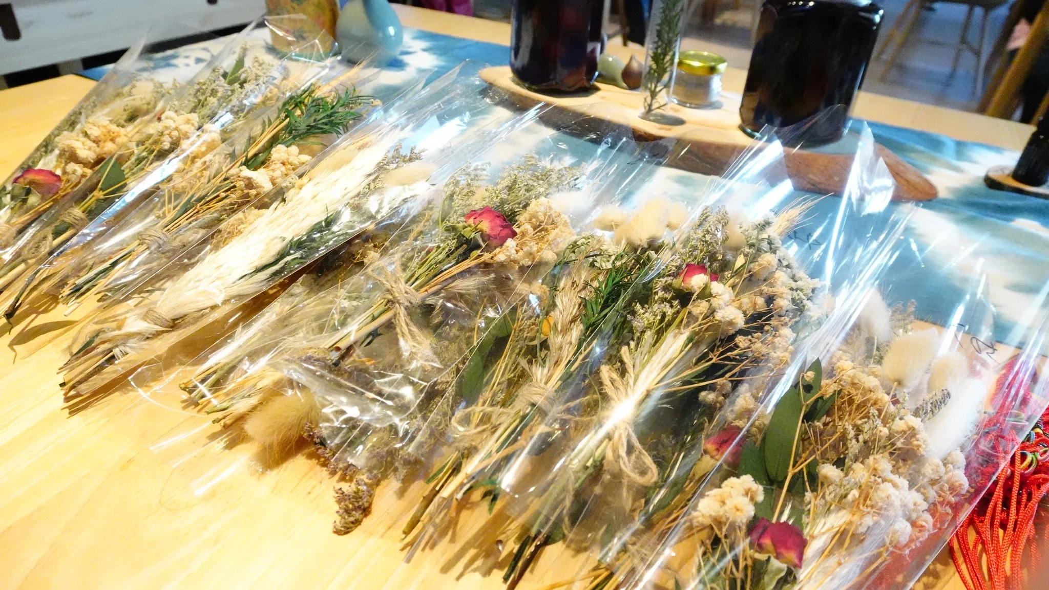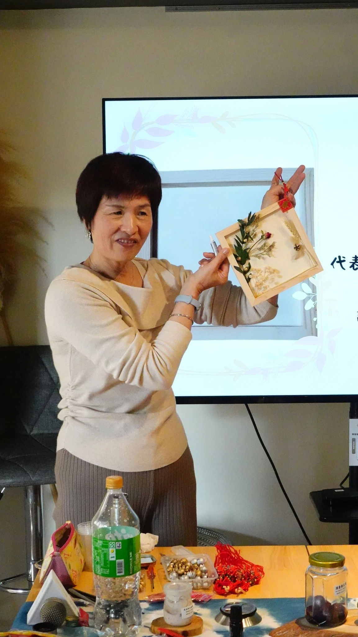 有學員說這剛好適合新年,也有學員說,她媳婦剛生小孩,她要把作品送給媳婦,傳遞她的祝福,這樣美好的能量深深感動了大家,這不只是一堂花藝課,更像是一場為新一年準備的感官療癒儀式。