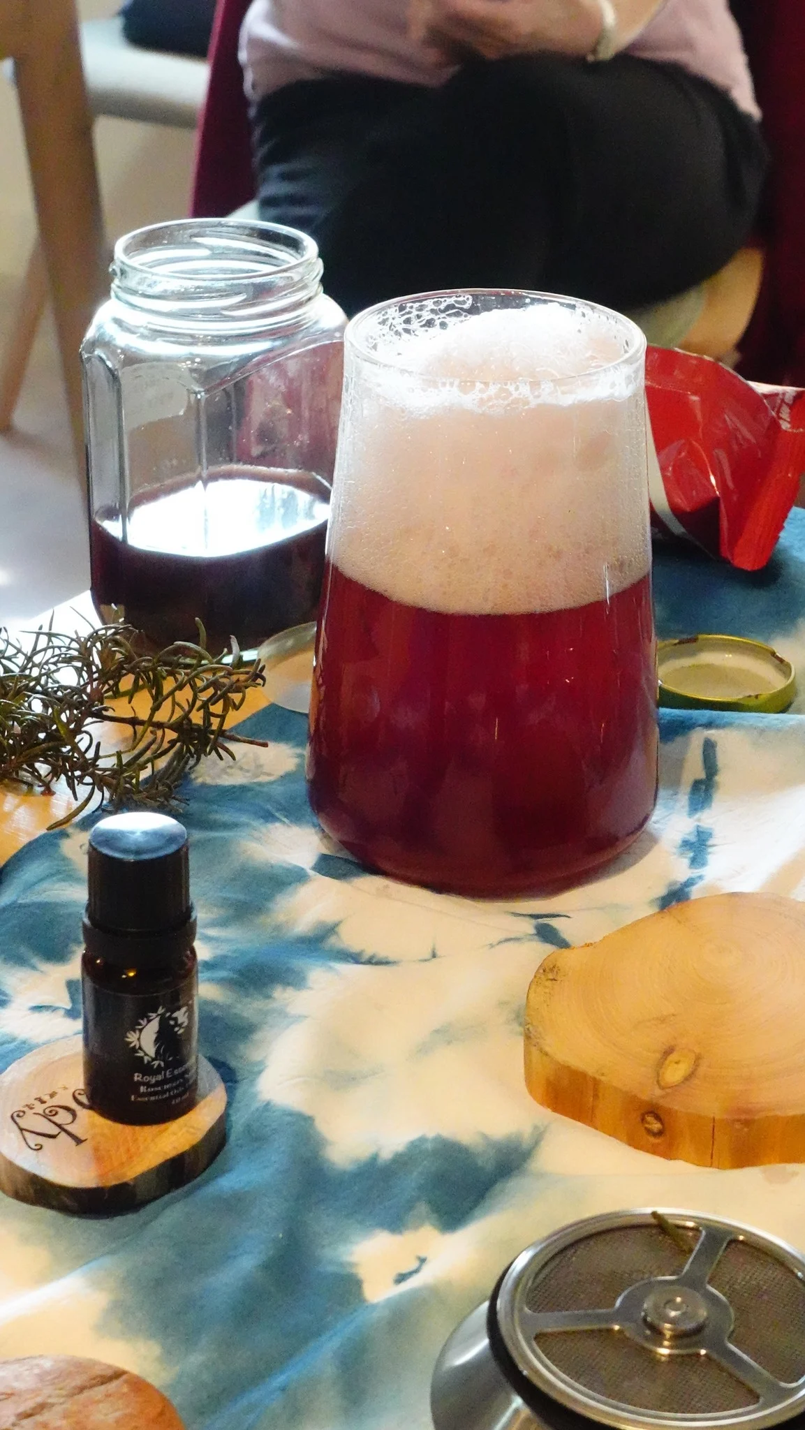 閉上眼,用嗅覺感受天然迷迭香與迷迭香精油層層展開的清新氣息;再用味覺細細品飲無花果氣泡飲,搭配無花果奶油乳酪餅乾,在香氣與滋味之間,讓身體慢慢放鬆、心也靜了下來。