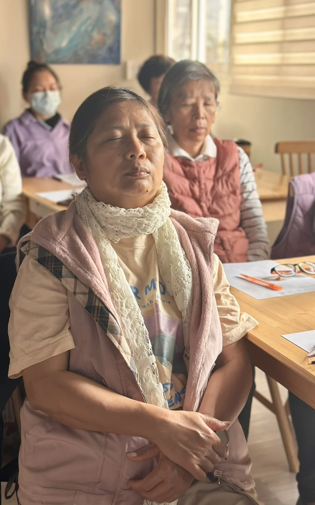 🧘在這場心靈講座中,老師先帶著大家慢慢靜下心來,透過深呼吸,把注意力帶回自己身上,試著感受此刻的情緒,也重新檢視自己的內心,當感到孤單時,腦海裡最先浮現的人是誰?那份想念與牽掛,其實正提醒著我們:人與人之間的連結,一直都很重要。
